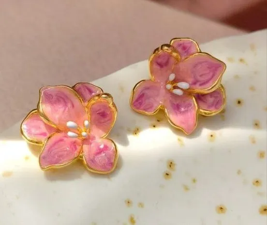 These Enamel Art Pink Flower Stud Earrings are perfect for adding a pop of color and charm to your look. Crafted with delicate pink enamel petals and pearl accents at the center, they bring a playful yet elegant touch. Lightweight and easy to wear, they’re great for daily styling, casual outings, or gifting. A sweet and trendy accessory to brighten up any outfit.