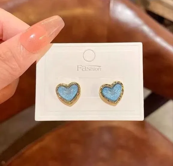 💎 Make your everyday look effortlessly stylish with the Korean Blue Heart Stud Earrings!