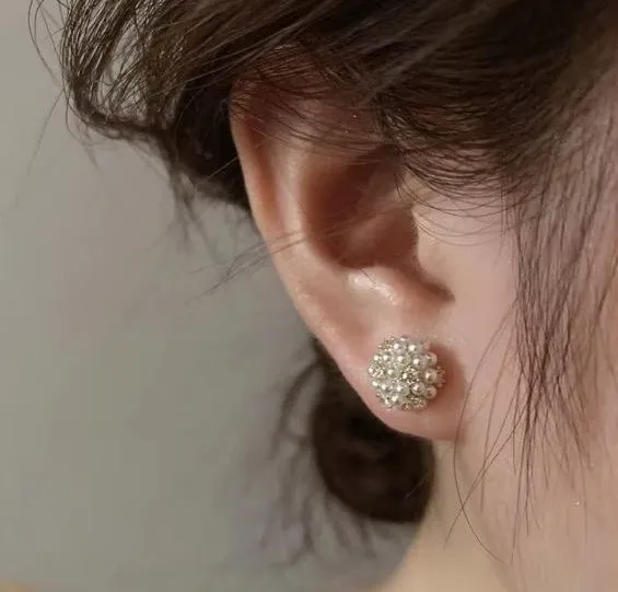 These Round Ball Pearl Zircon Stud Earrings beautifully combine classic charm with modern sparkle. Designed with intricate detailing, each earring features a cluster of lustrous mini pearls arranged in a spherical shape, highlighted by dazzling zircon stones for an extra touch of glamour.